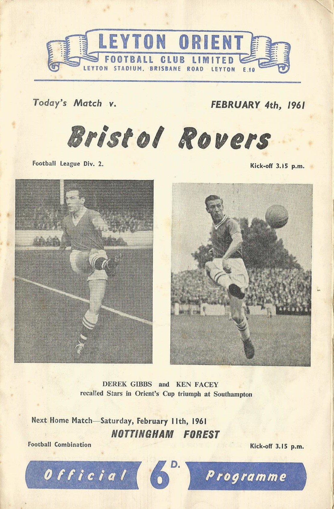 1960/61 Southampton v Leyton Orient FA Cup 4th Round