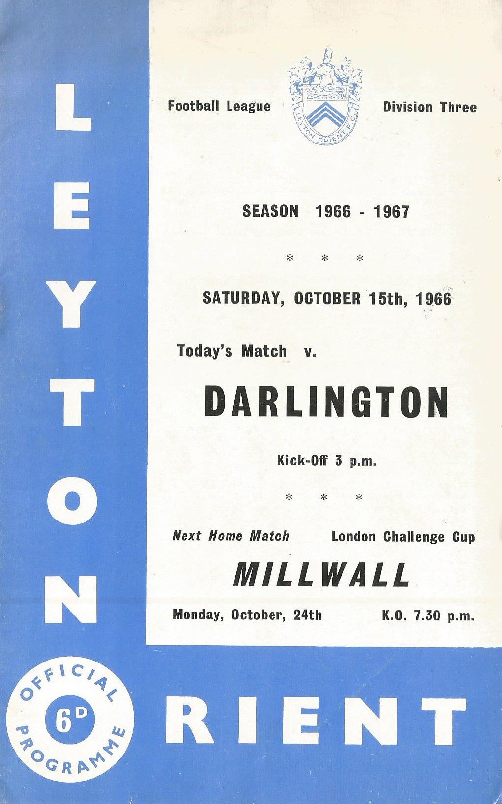 1966/67 Brighton & Hove Albion v Orient League Division Three