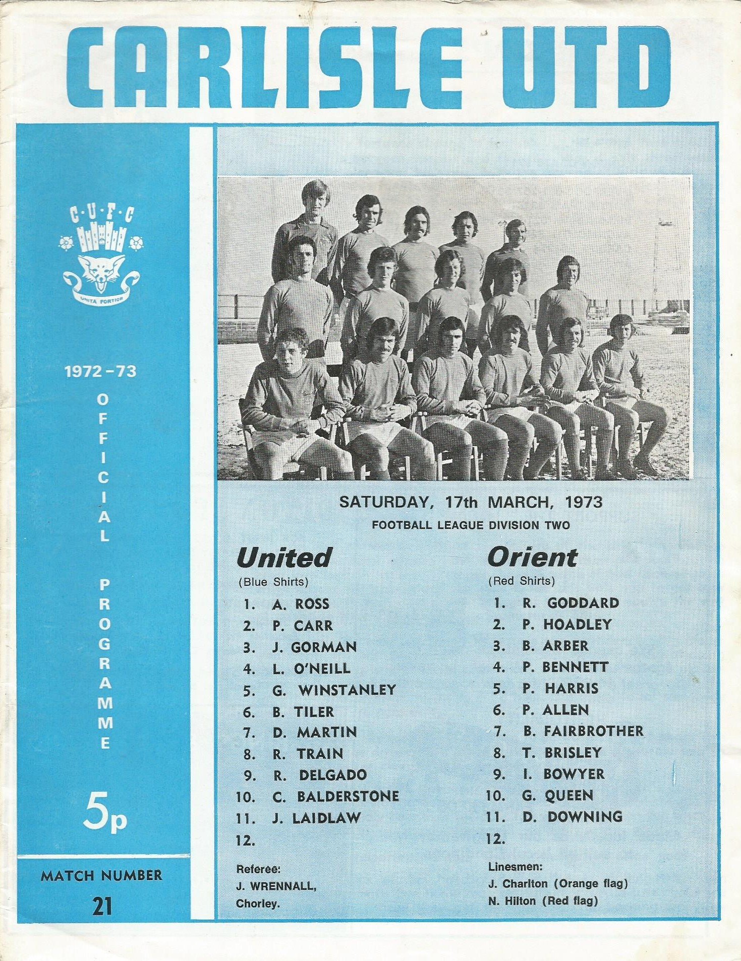 1972/73 Orient v Huddersfield Town League Division Two