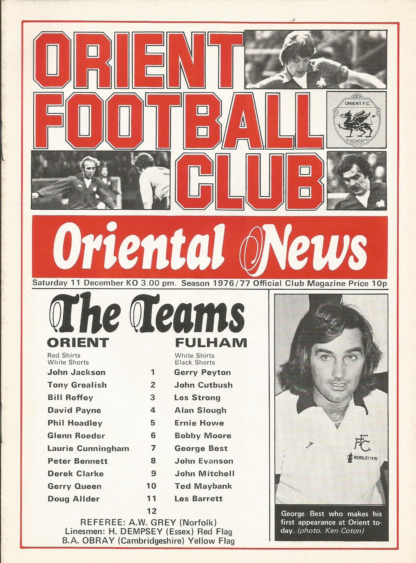 1976/77 Carlisle United v Orient League Division Two