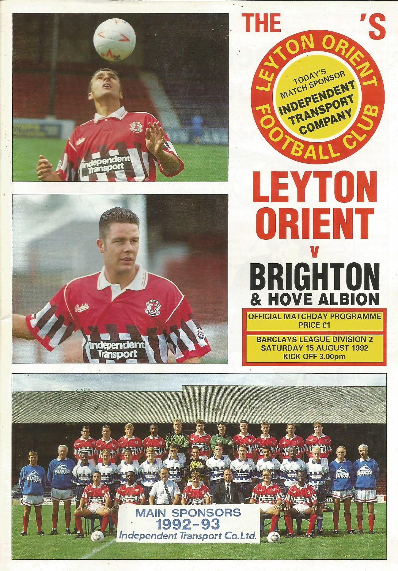 1992/93 Leyton Orient v Millwall Coca Cola Cup 1st Round 1st Leg