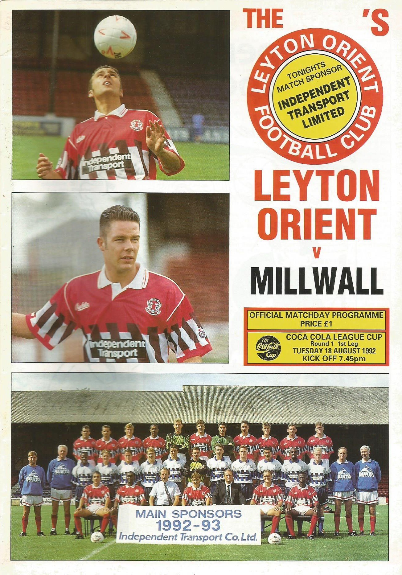 1992/93 Leyton Orient v Brighton & Hove Albion Barclays League Division Three