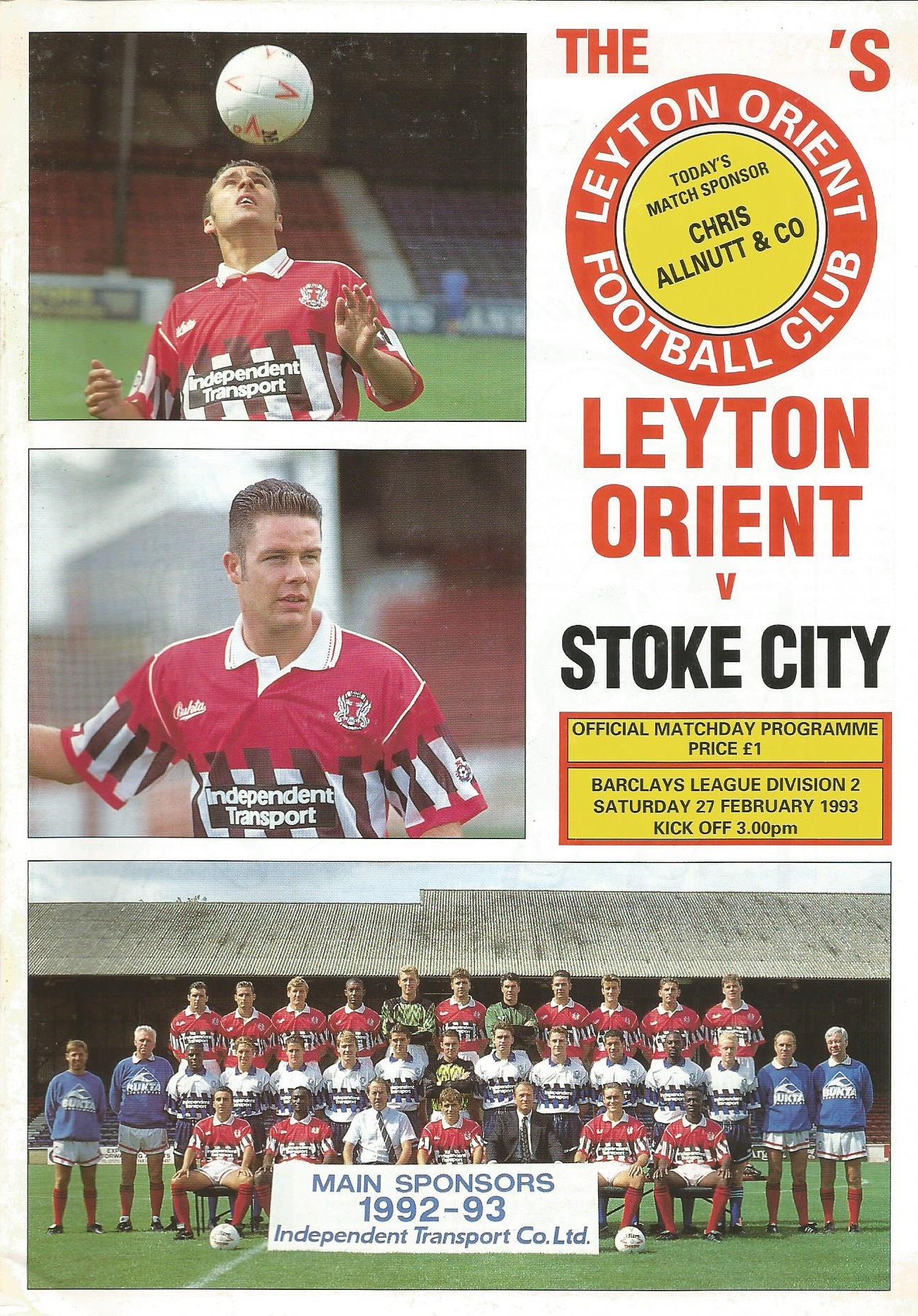 1992/93 Bolton Wanderers v Leyton Orient Barclays League Division Three