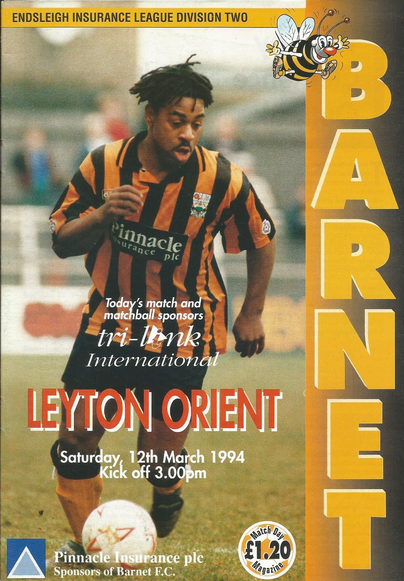 1993/94 Leyton Orient v Brentford Endsleigh Insurance League Division Two