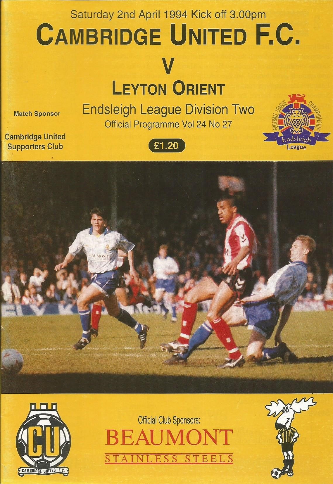 1993/94 Leyton Orient v Wrexham Endsleigh Insurance League Division Two