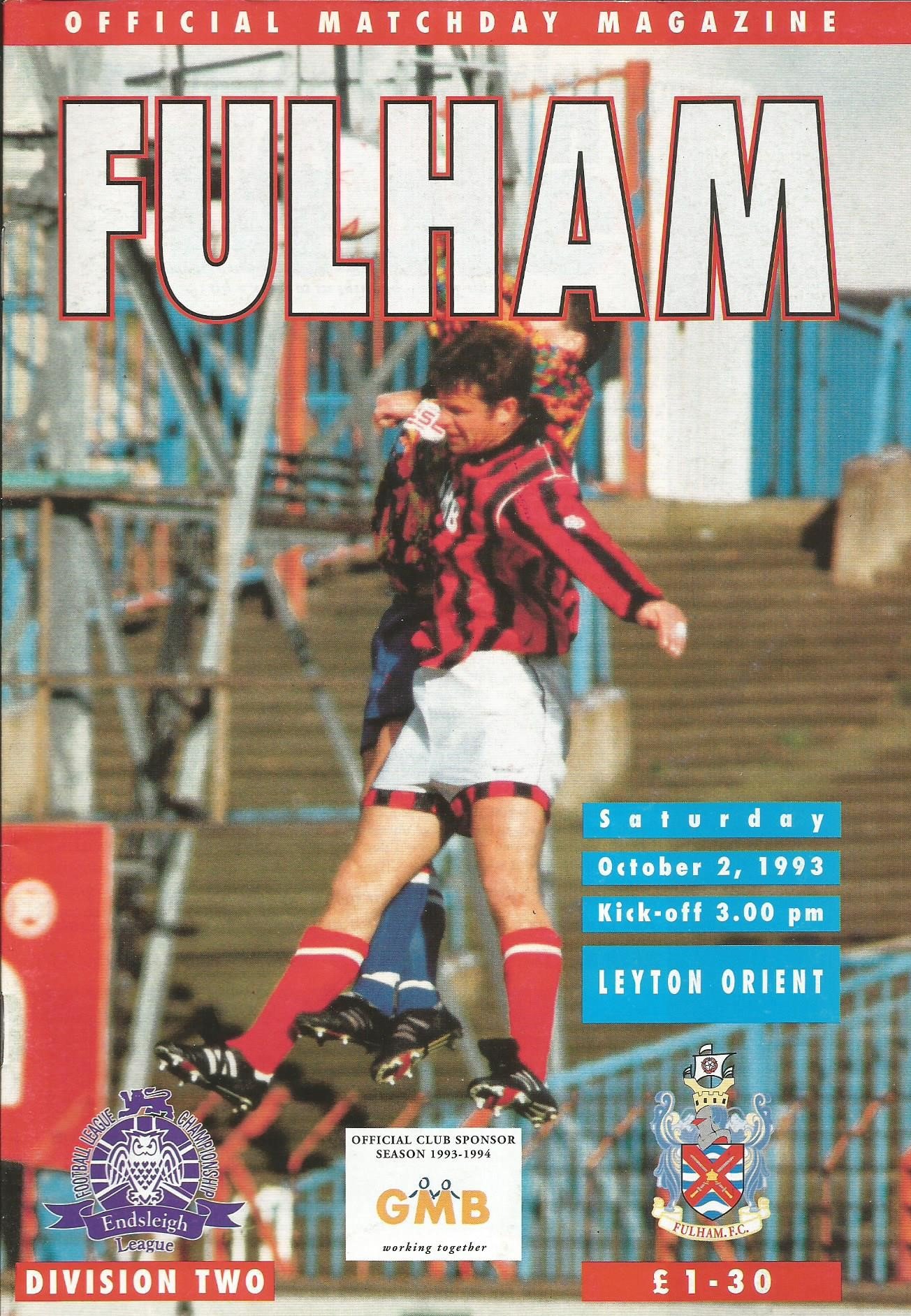 1993/94 Leyton Orient v Brighton & Hove Albion Endsleigh Insurance League Division Two