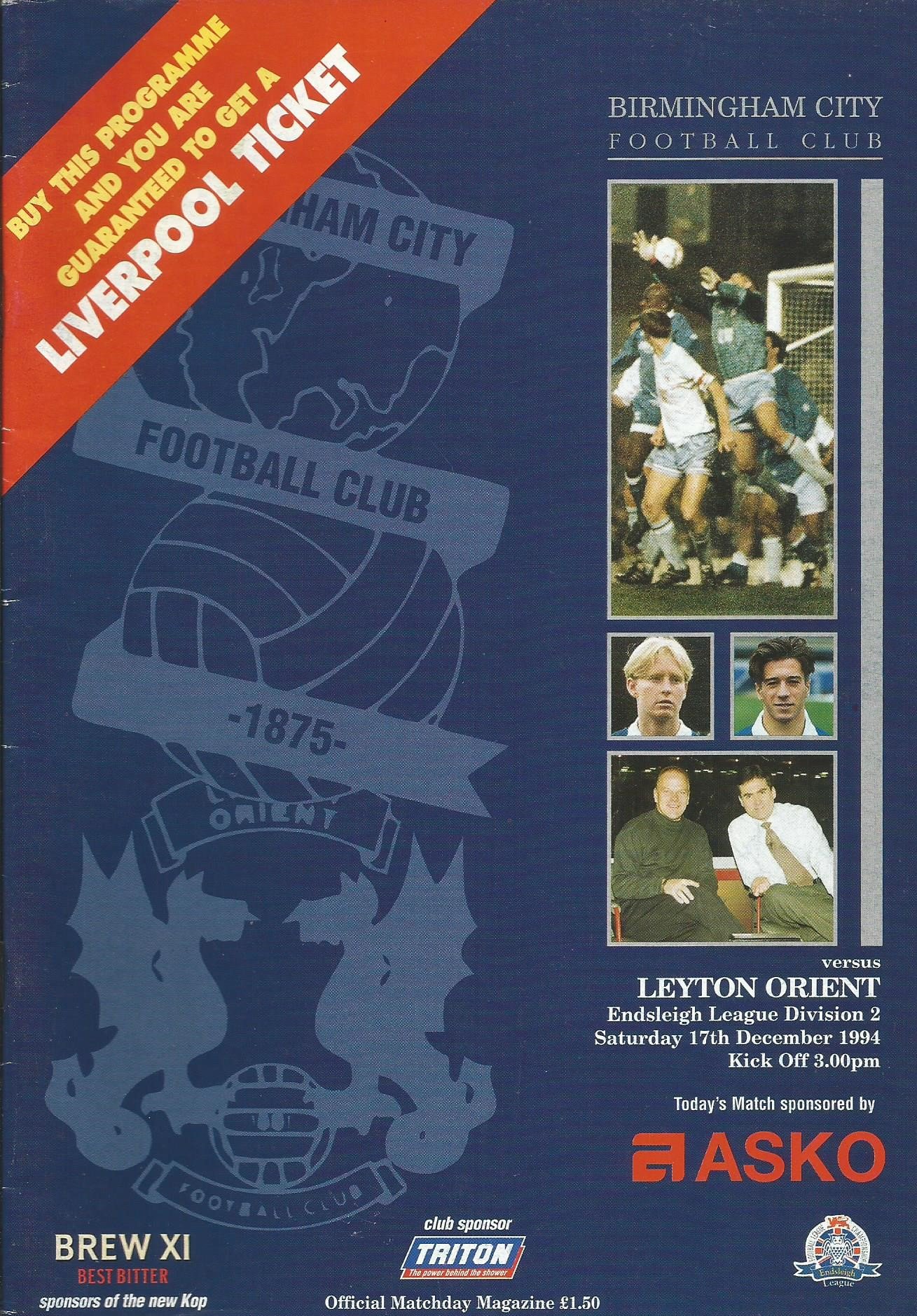 1994/95 Leyton Orient v Bradford City Endsleigh Insurance League Division Two