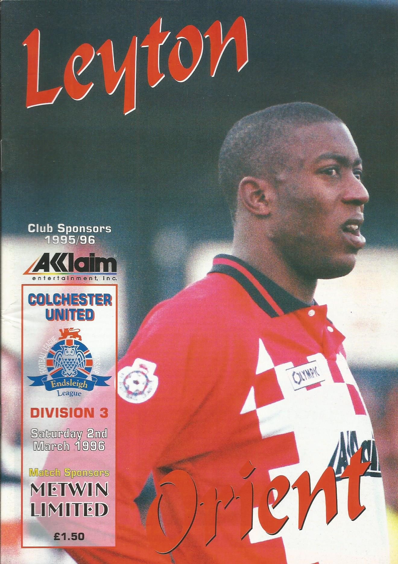 1995/96 Leyton Orient v Plymouth Argyle Endsleigh Insurance League Division Three