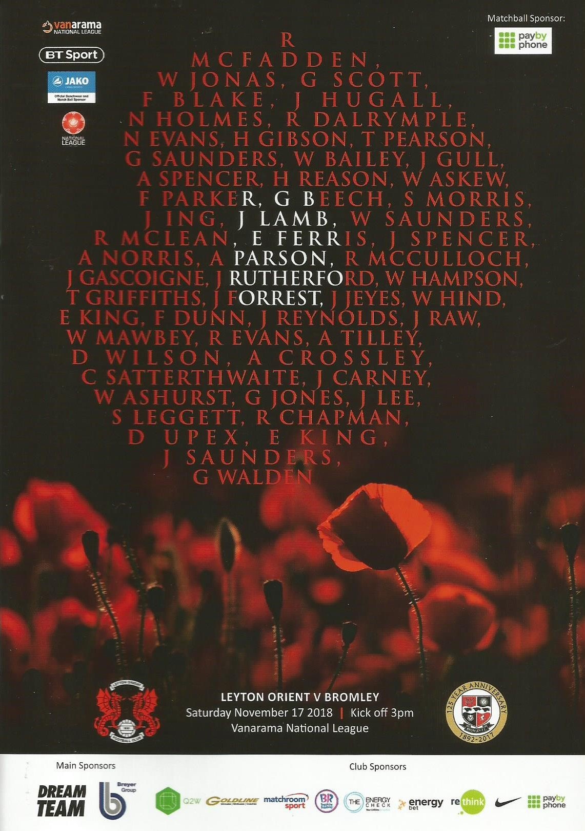 • Saturday 17th November 2018